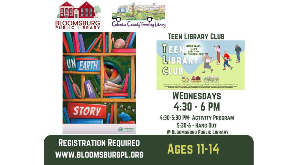 Calling all Middle Schoolers- We are excited to announce that Teen Library Club will be continuing throughout the summer! Join us weekly at the Bloomsburg Public Library for a summer of colorful fun!